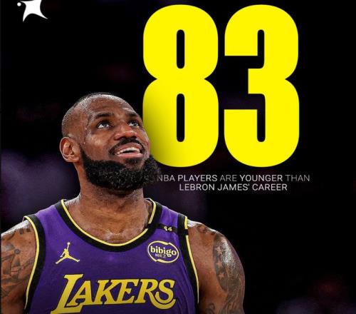 詹姆斯将迎来个人的第23个赛季,成为历史第一人,他将在12月30日迎来自己的41岁生日。据媒体统计,本赛季NBA球队中有83名球员是在詹姆斯生涯首秀后出生,詹姆斯在2003年10月29日完成了生涯首秀。这一数字在赛季中期可能会发生变化,因为球员在NBA和G联盟之间可能还会出现流动。
