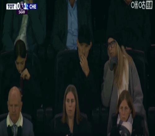 第57分钟,镜头给到场边,图赫尔看台观战