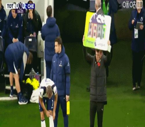 第7分钟,贝里瓦尔无法坚持,被哈维-西蒙斯换下