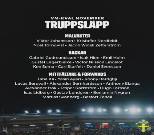 哲凯赖什因伤落选了最新一期瑞典国家队大名单。
