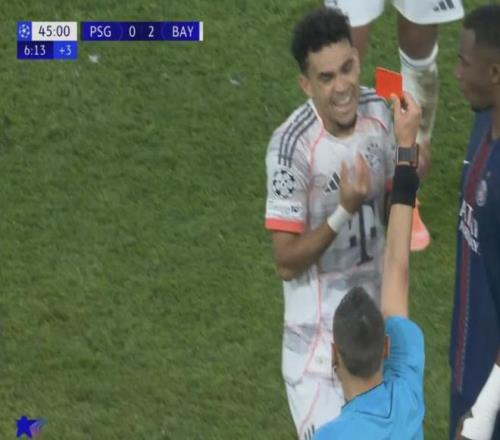 路易斯-迪亚斯在对巴黎的比赛中被罚下场,他也将因此无缘拜仁对阿森纳的焦点大战。