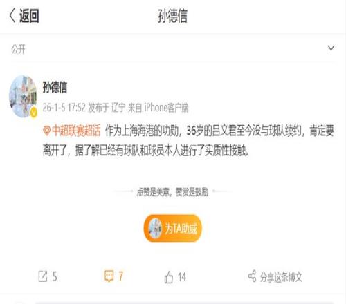 日前,36岁的上海海港功勋吕文君未获续约、大概率离队的消息,引发了球迷热议。这位见证球队从中乙到中超三连冠的 “崇明一期” 元老,在2025赛季仅收获11次登场,逐渐淡出主力阵容。结合其年龄、家庭状况、职业规划及近期动态,吕文君的潜在下家有哪些呢?
