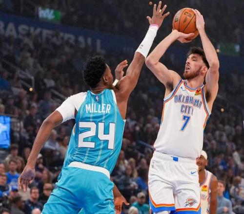 第二节开场黄蜂打出了一波29-11的攻防浪潮一波流将分差拉开到18分,SGA是连连打铁。上半场打完亚历山大12中3+三分3中1拿到9分6助攻2失误,他最擅长的造犯规只有2次罚球,失去了罚球的SGA各种打铁。霍姆格伦半场11分,杰威半场8中3拿8分,换言之雷霆三巨头一同歇菜,而黄蜂的米勒半场9中7拿到19分。