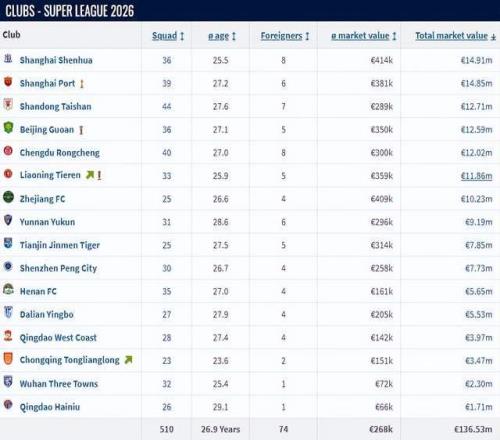 更恐怖的是,全队德转即时身价已经达到1186万欧,作为一支中超升班马,竟然直接排进了前6名,仅次于申花、海港、泰山、国安和成都蓉城,超越了浙江、云南玉昆、天津津门虎等10支中超劲旅,非常值得期待。