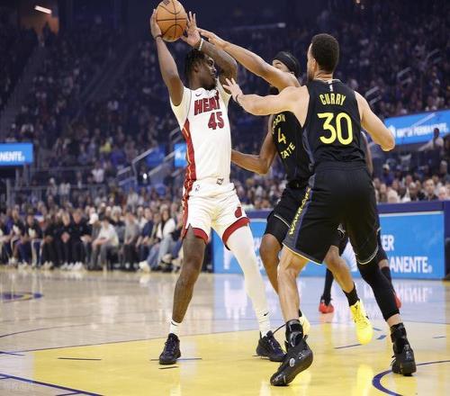 下半场易边再战,第三节勇士上来,连续打铁失误,阿德巴约外线三分终于进了。双方又是对攻大战,但巴特勒被撞到膝盖,痛苦倒地被队友架出场外。但巴特勒受伤以后,勇士反而打了一波12-0的小高潮,一举拉开分差到两位数,三节结束热火93-104落后11分。