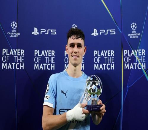 梅开二度,福登当选曼城vs多特全场最佳球员